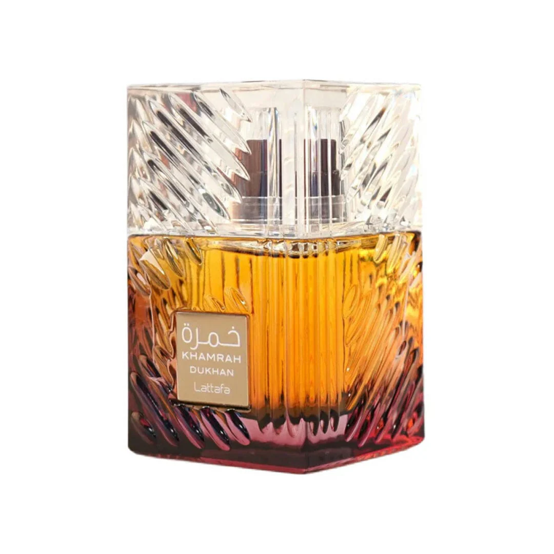 Lattafa Khamrah Dukhan Eau de Parfum 100 ml es una fragancia unisex lanzada en 2025 que combina notas especiadas, dulces y amaderadas para ofrecer una experiencia olfativa intensa y envolvente. Inspirada en la tradición árabe del «dukhan» (humo), esta fragancia busca capturar la esencia del ritual de perfumar con humo, ofreciendo un aroma sofisticado y moderno.