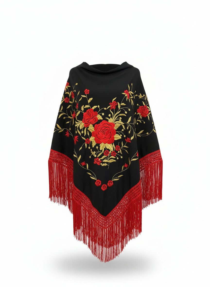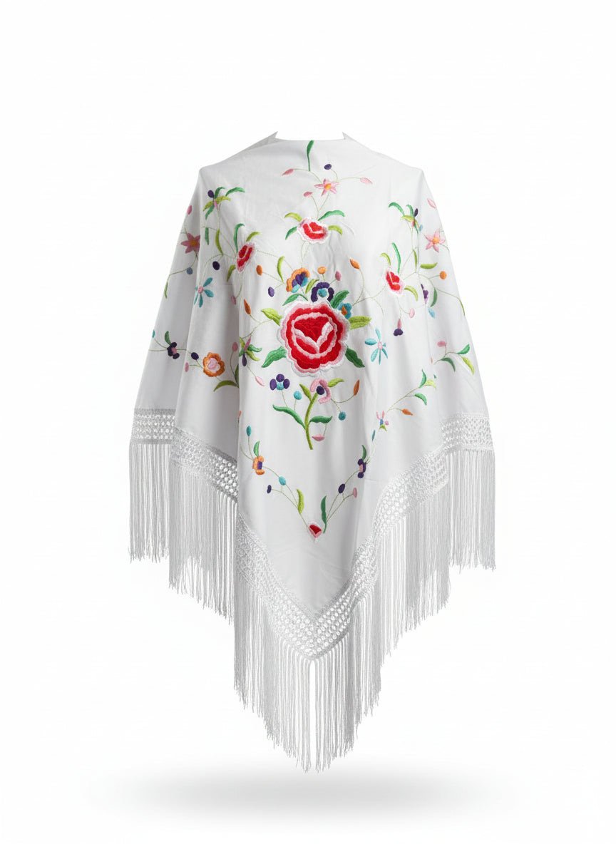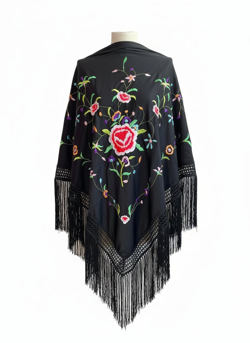 Diseñado con atención artesanal, este mantón es perfecto para quienes buscan un look único y memorable que respete la esencia sevillana con carácter propio.