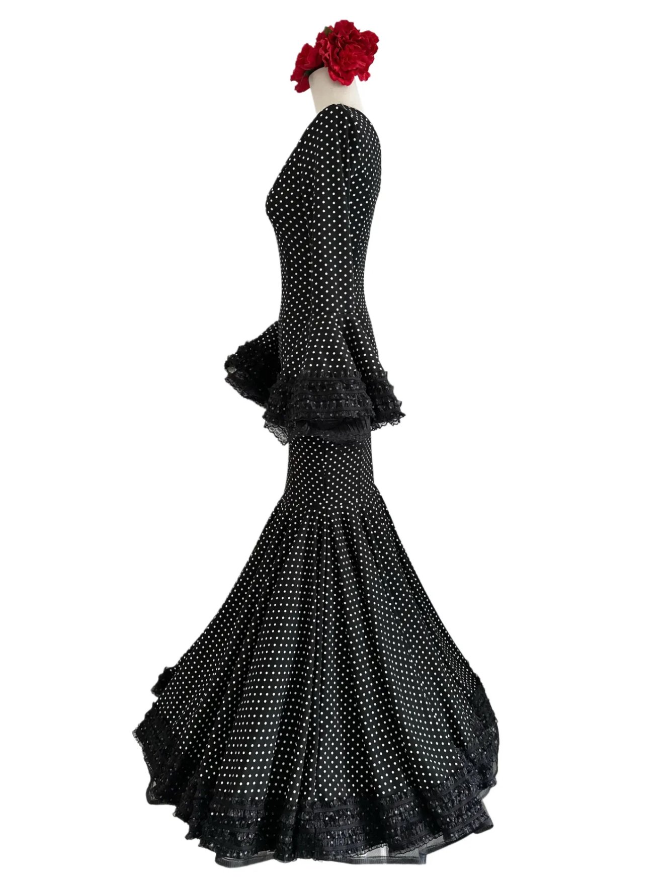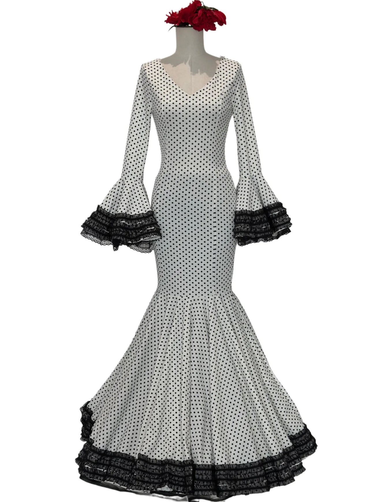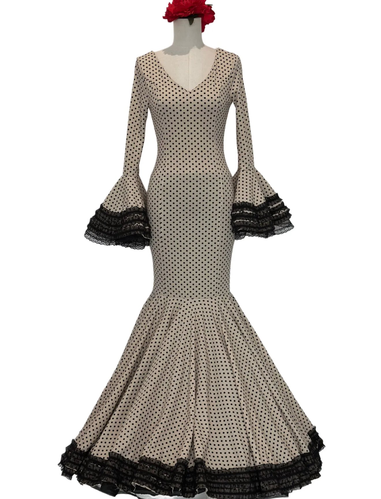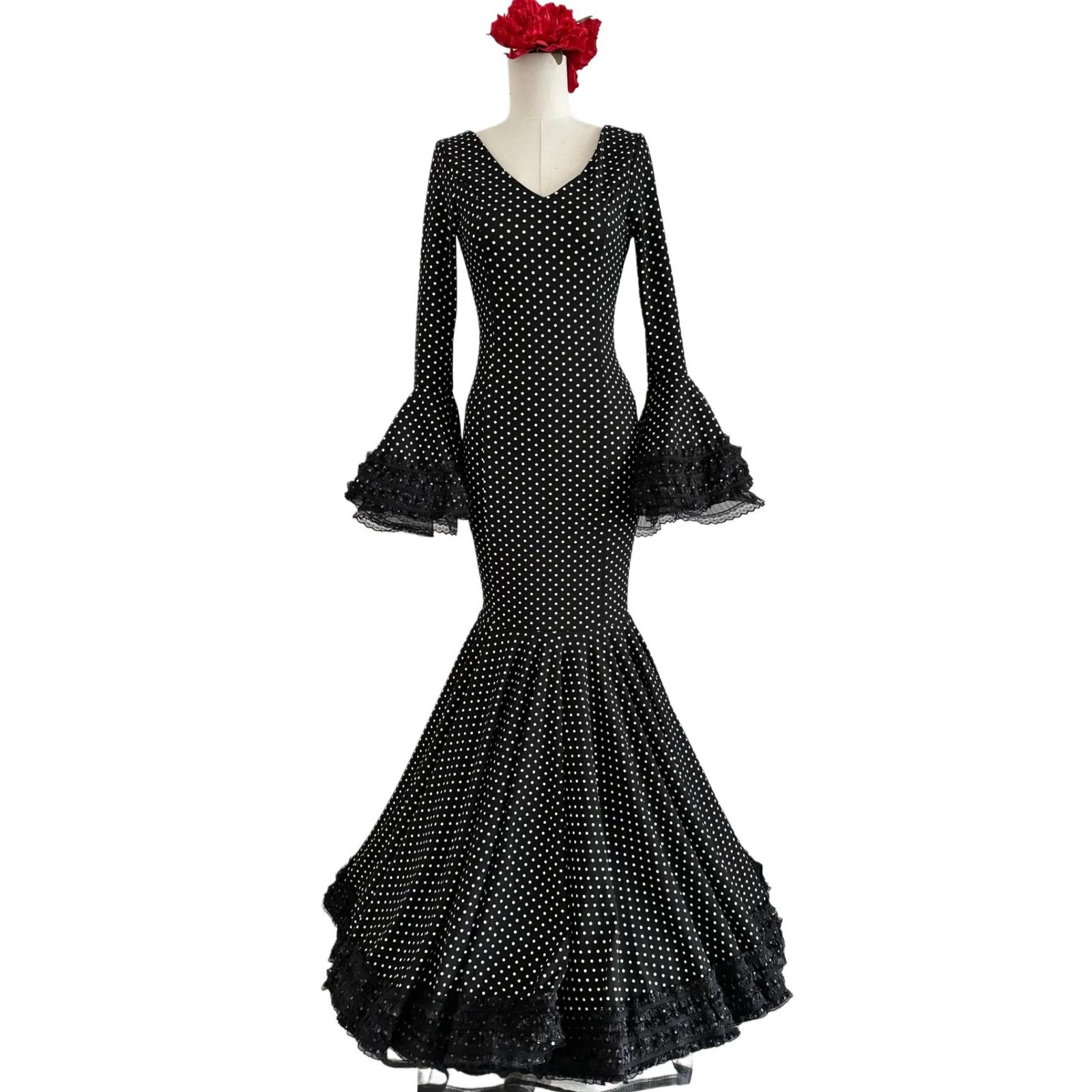 VESTIDO FLAMENCA LICRA FABRICADO EN ITALIA . TALLAS 6XL 52/54/56 -PECHO 104CM CINTURA 92CM CADERA 108CM LARGO 158CM
