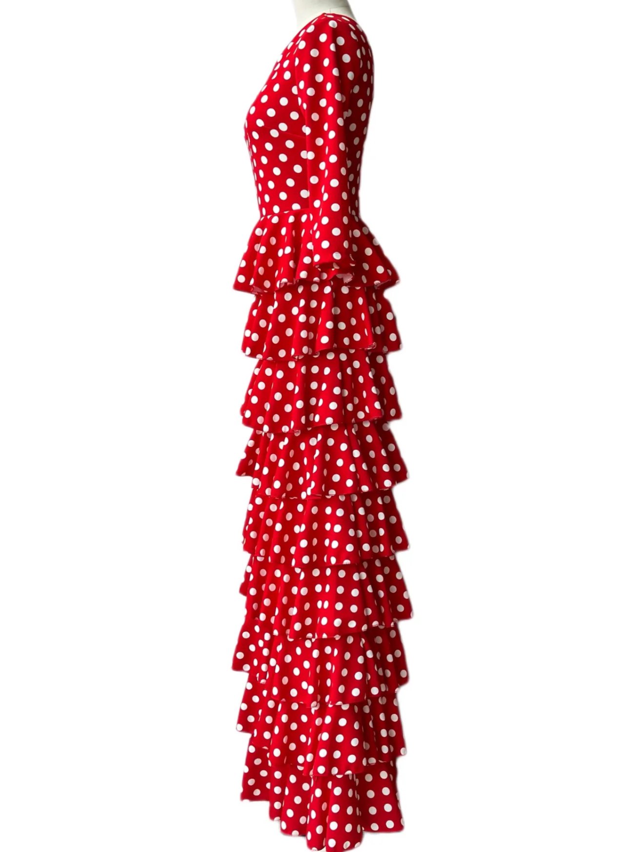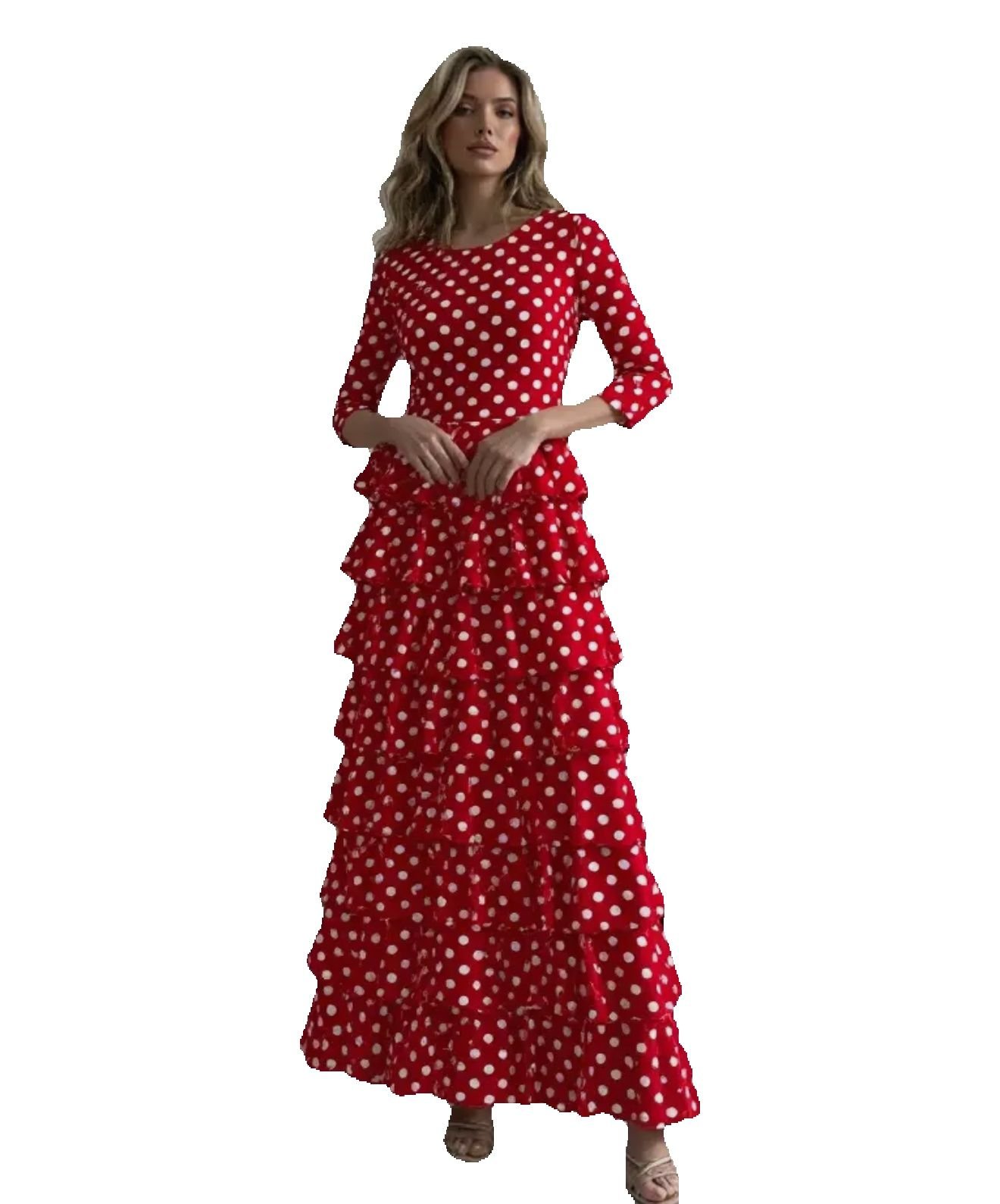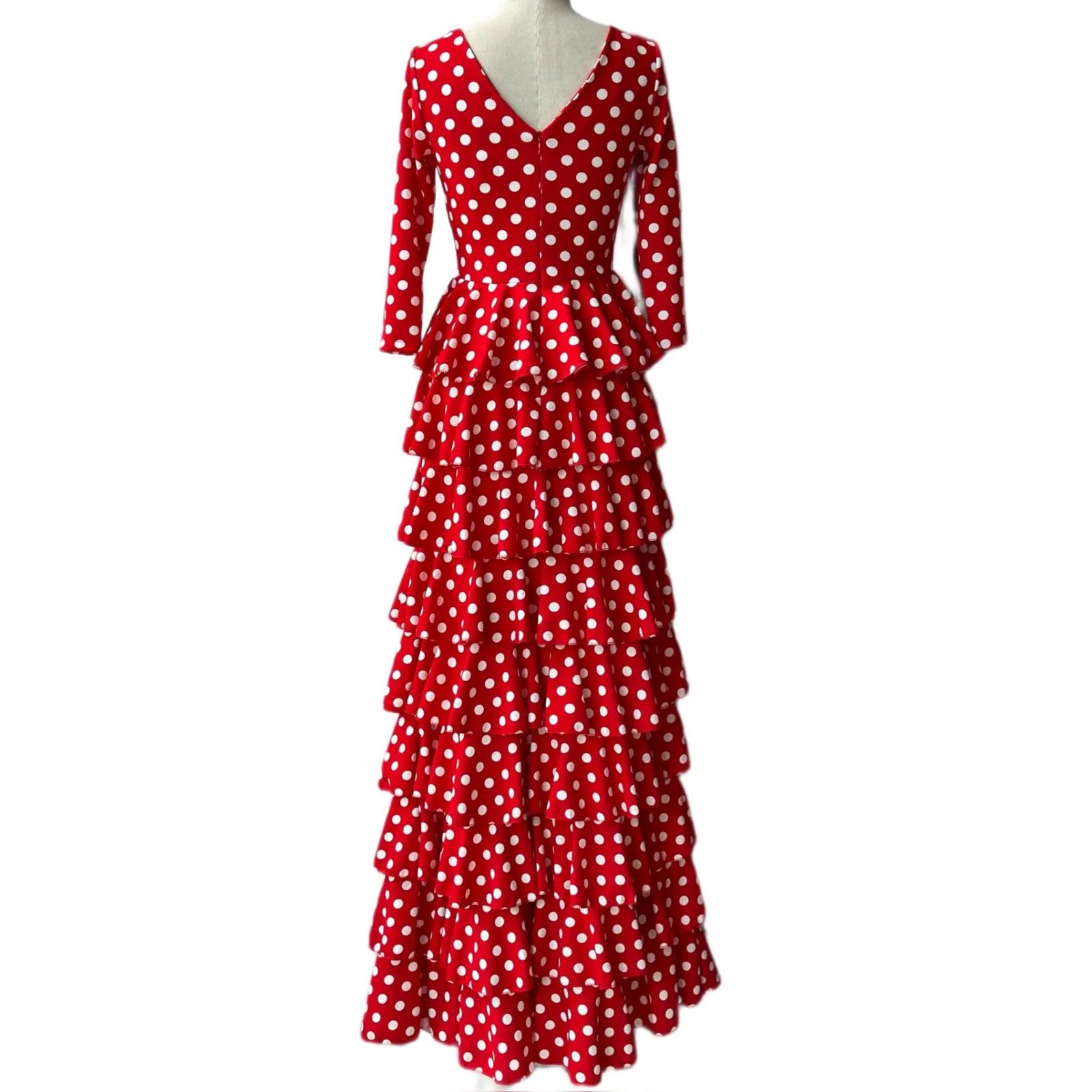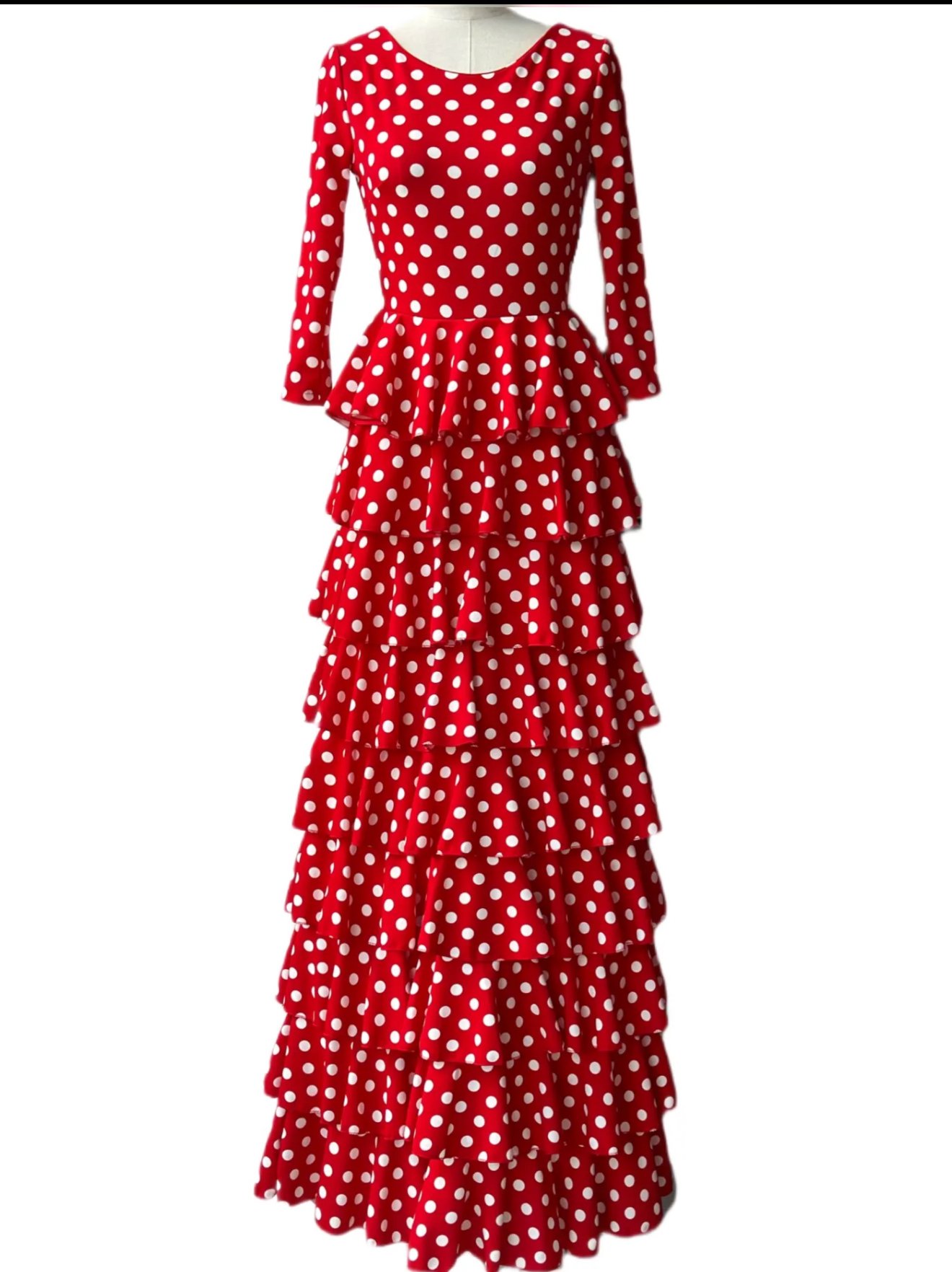 VESTIDO FLAMENCA LICRA FABRICADO EN ITALIA . TALLAS XS/S 34/36 – 72CM 60CM 76CM . M/L 38/40 – 80CM 68CM 84CM . XL/XXL – 42/44/46 – 92CM 80CM 96CM .6XL 52/54/56 -118CM 100CM LARGO 150CM