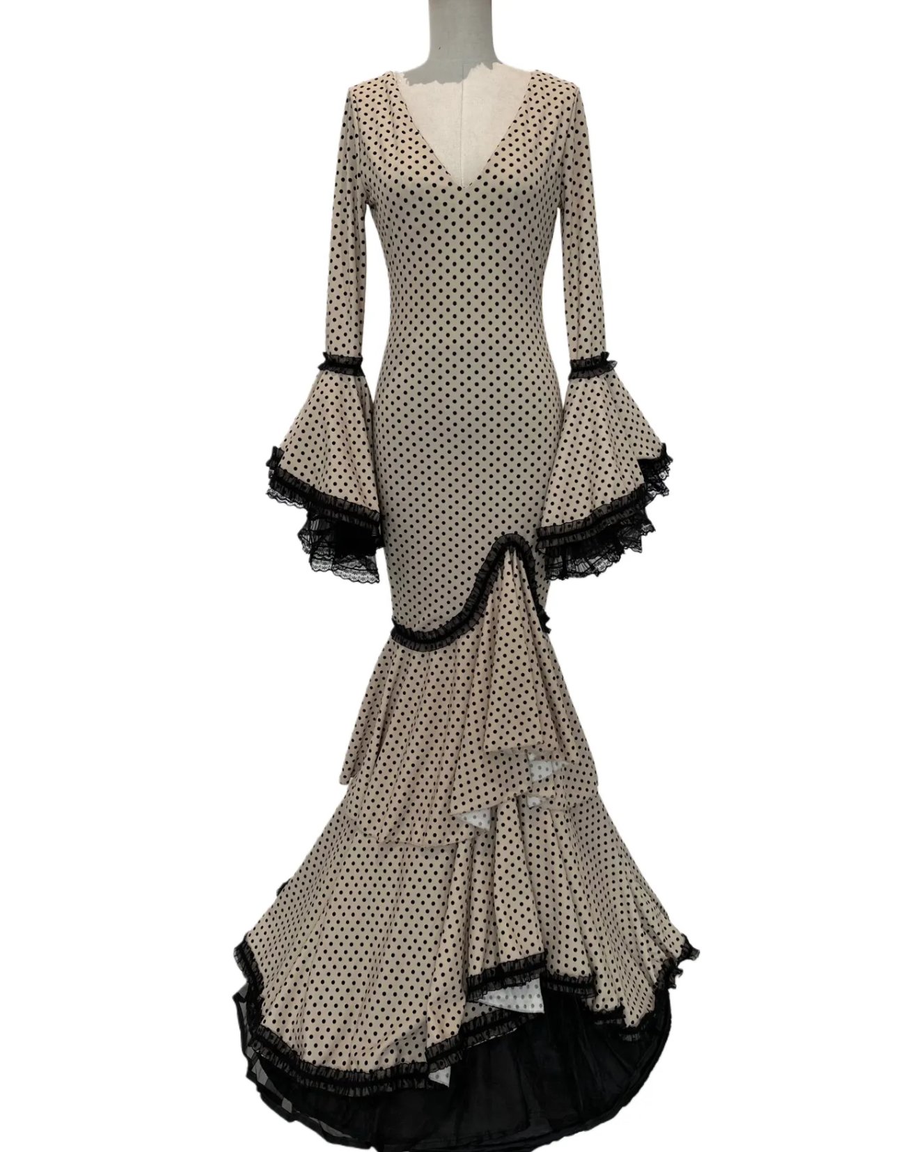 VESTIDO FLAMENCA LICRA FABRICADO EN ITALIA . TALLAS XS/S 34/36 – 72CM 60CM 76CM . M/L 38/40 – 80CM 68CM 84CM . XL/XXL – 42/44/46 – 92CM 80CM 96CM LARGO 150CM